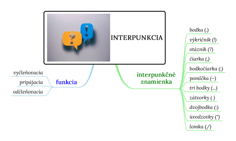Interpunkčné znamienko čiarka (,) má tri funkcie: pripájaciu (naznačuje, že bude nasledovať rovnorodý vetný člen, rovnocenná hlavná veta alebo vedľajšia veta), vyčleňovaciu (vyčleňujú sa ňou tie výrazy, ktoré nie sú vetnými členmi, ďalej uvádzacie vety vsunuté do reči postáv, hodnotiace konštrukcie s trpným príčastím, rozvité prechodníkové konštrukcie a vety v podraďovacom súvetí), odčleňovaciu (PSP, 2013, s. 98 — 105).