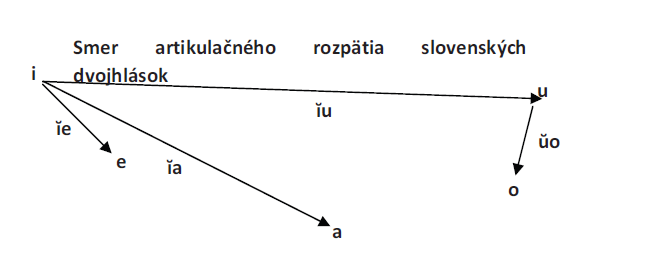Obr. 1 Smer artikulačného rozpätia slovenských dvojhlások
